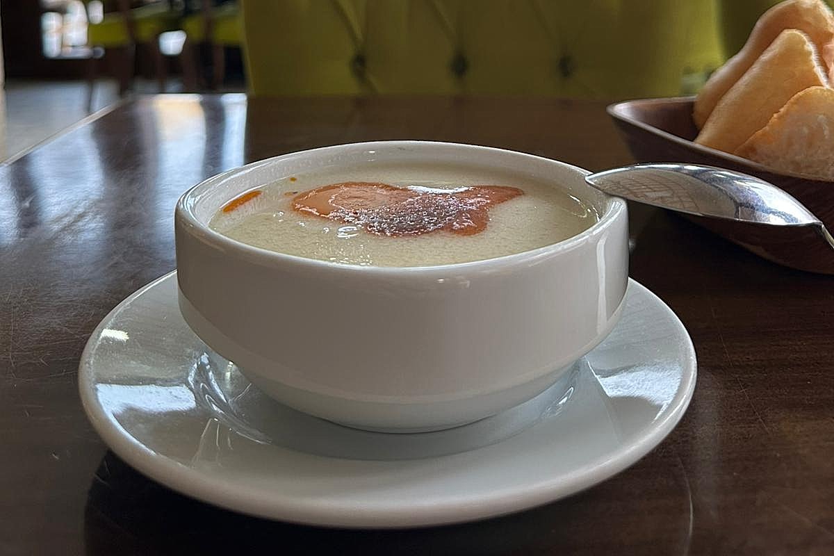- Terbiyeyi kaynayan çorbaya ince bir akıntıyla, sürekli karıştırarak ekleyin. 3–4 dakika daha pişirin; çorba hafifçe koyulaşacaktır.